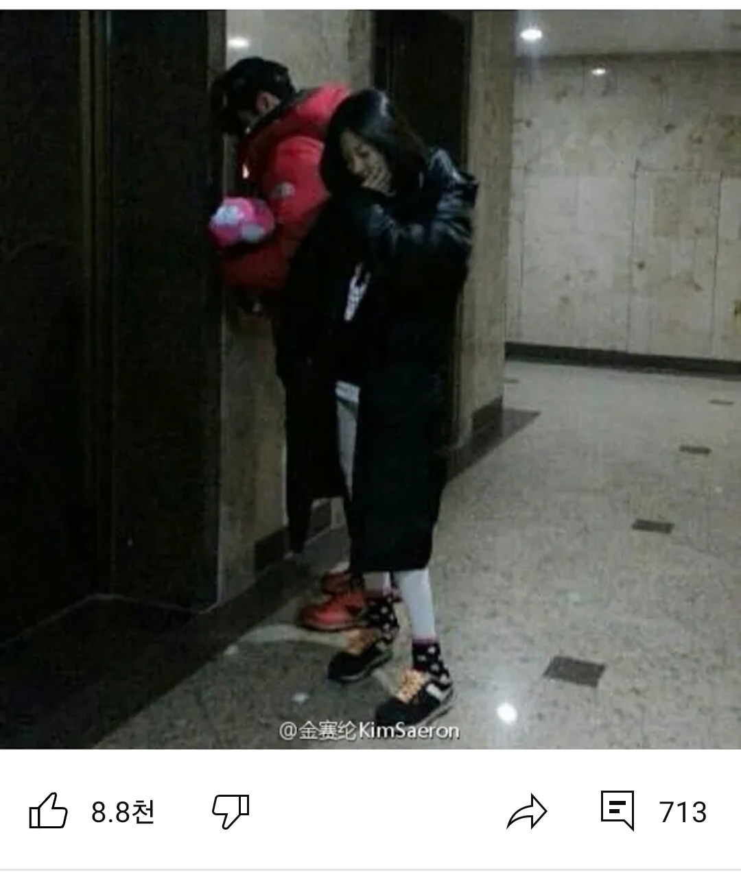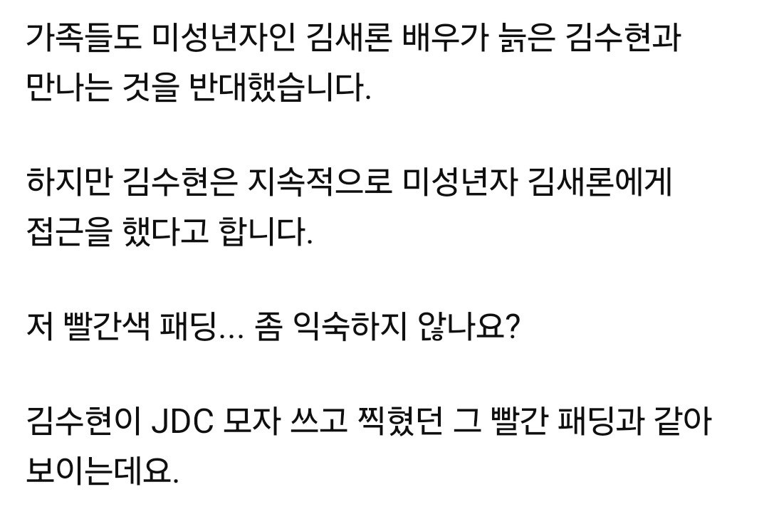 빨간색 패딩이 익숙하다며 김수현 패딩과 같아보인다고 함.