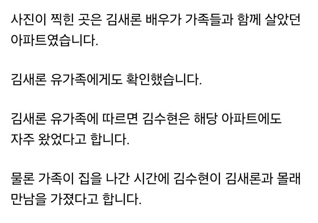 가족들은 김수현이 그 아파트에 자주 왔었다고 함.