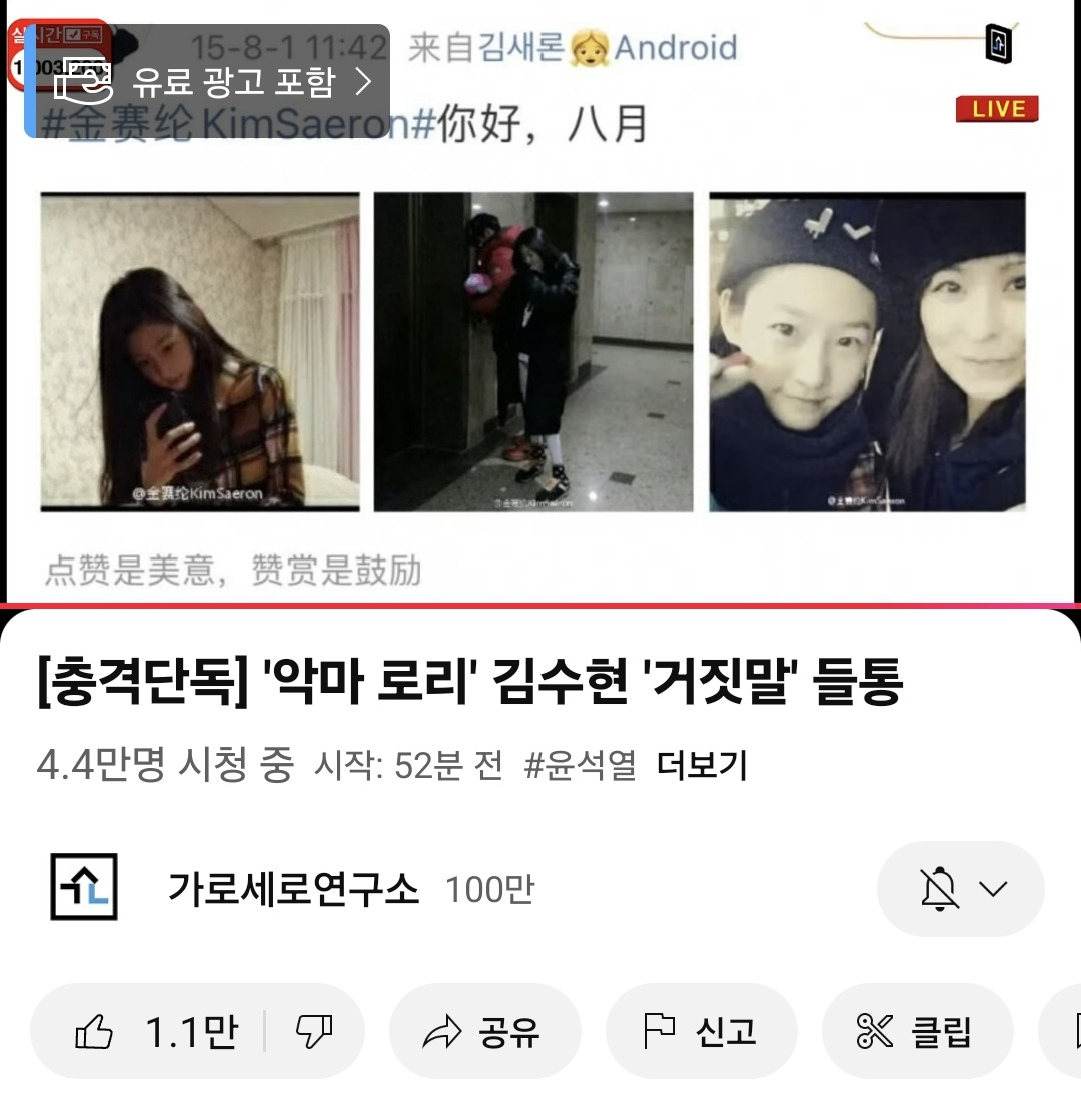 가세연에서 김새론과 한 남자의 사진을 공개하며 2017년 인스타에 올라온 사진이라고 함.
