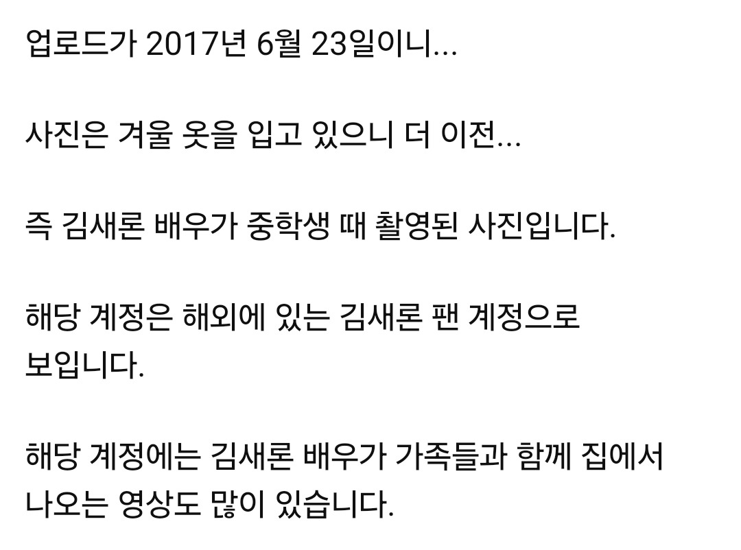 2015년의 김새론의 모습을 담은 계정인데…