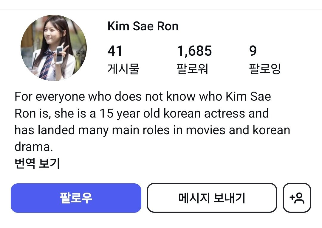 15살의 김새론을 알리기 위한 인스타 계정.