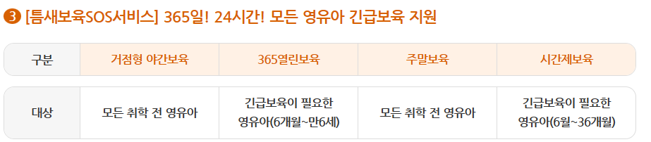 365일 이용할 수 있는 긴급 틈새 보육 서비스