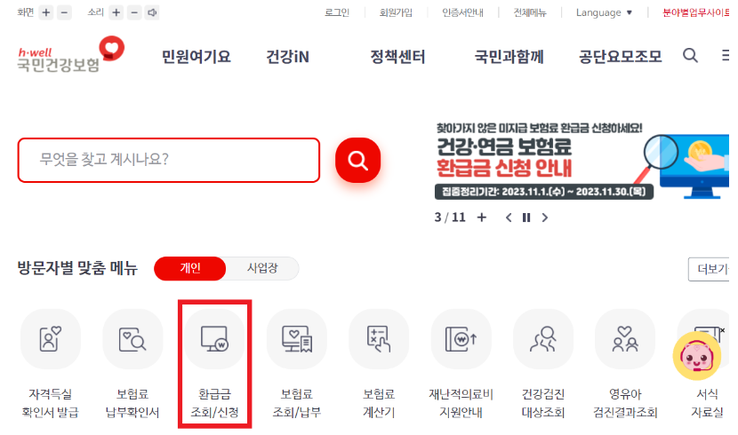 그동안 납부하신 건강보험료 중 환급이 가능한지 궁금하시다면 지금 바로 건강보험 환급조회 서비스를 이용해 보세요.