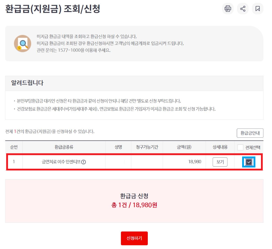 문의 결과 환불이 있는 경우에는 국민건강보험공단에 환불을 신청하실 수 있습니다.