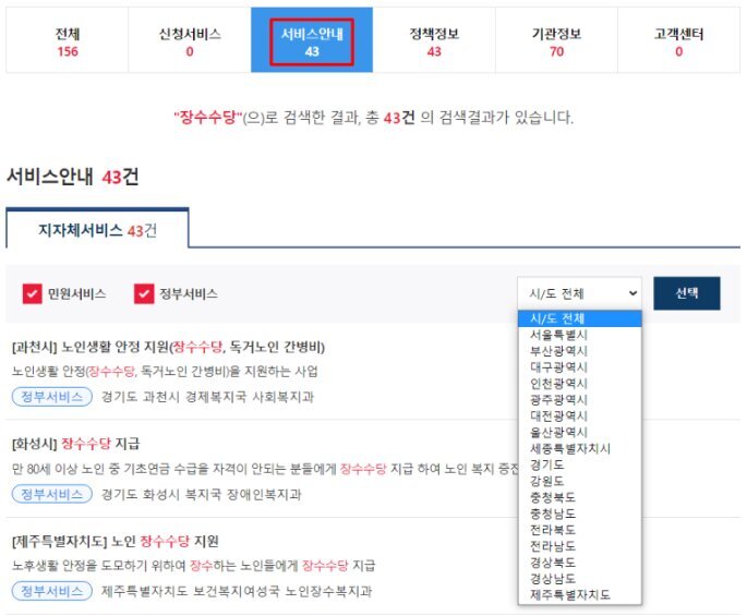 지역별 장수수당 신청 가능한지 궁금하시다면 ▼아래 표를 누르시면 해당 지역 사이트로 이동됩니다.