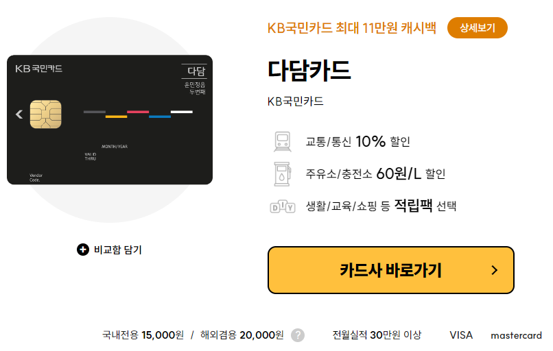 KB국민카드, 다담카드, 마트 교육비 혜택이 좋은 카드