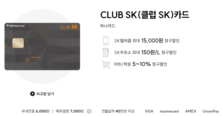 하나카드 CLUB SK(클럽 SK) 카드