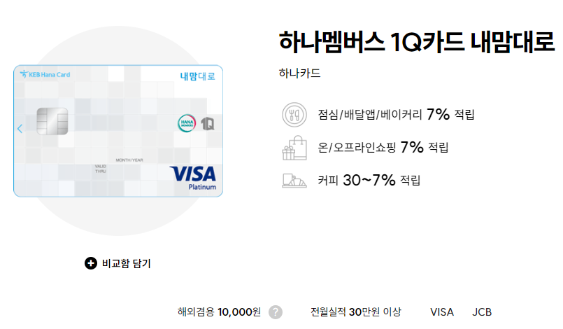 하나카드 하나멤버스 1Q 카드 마음대로