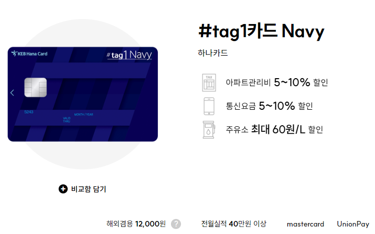 하나카드 #tag1 card 네이비