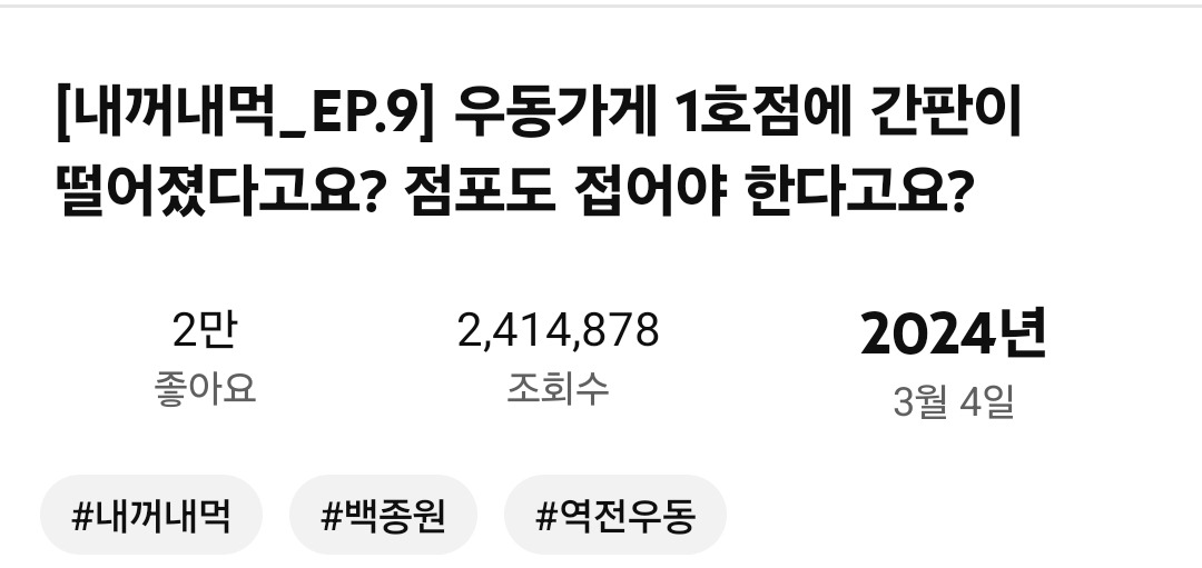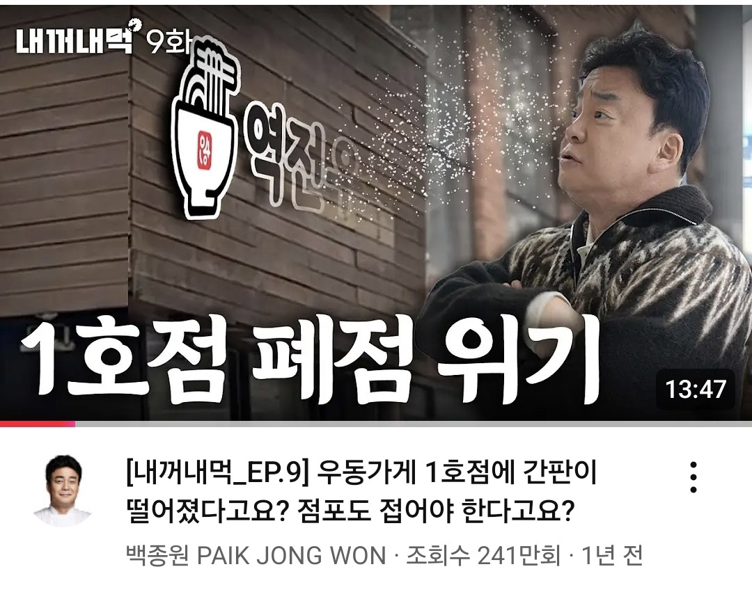 작년 3월 4일에 올라온 백종원의 역전우동 탐방기.