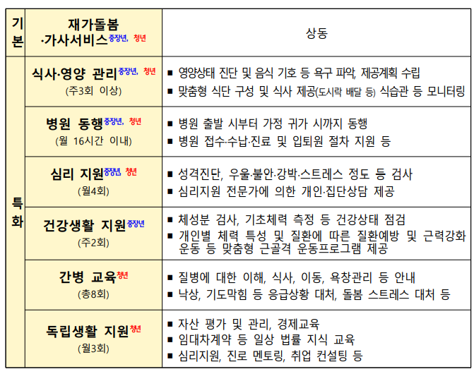 ▣ 제주시, 제주시(가정돌봄을 받는 중장년층, 청년층 대상)