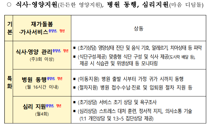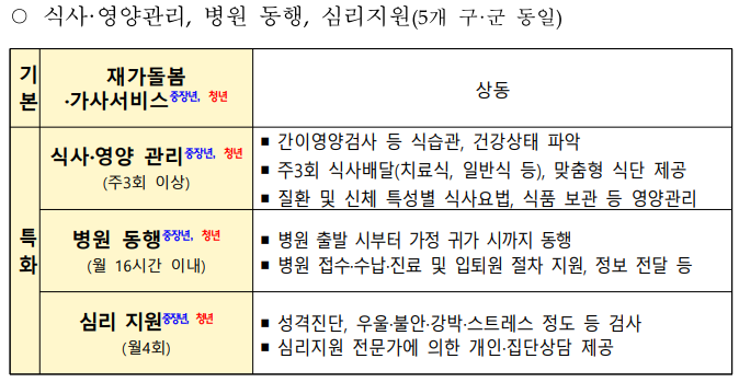 ▣ 울산 중구, 동구, 울주군 북구(가정 돌봄을 받는 중장년층 및 청년 대상)