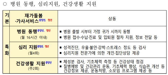 ▣ 경기도 광주시, 광명시, 남양주시, 용인시, 이천시(가정 돌봄을 받는 중장년층 및 청년 대상)