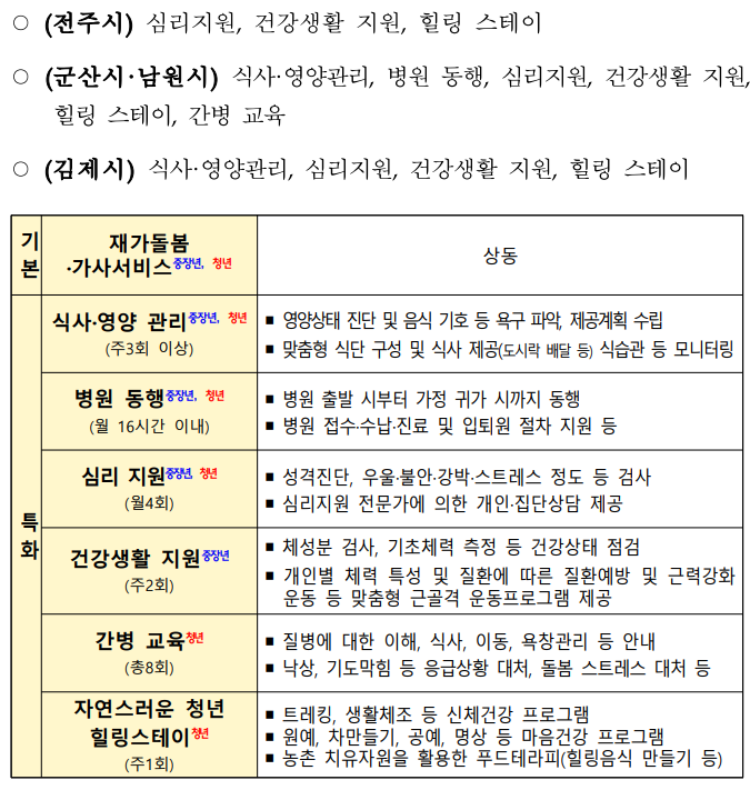 ▣ 전주시, 군산시, 남원시, 전라북도 김제시 (가족 돌봄을 받는 중장년층 및 청년 대상)