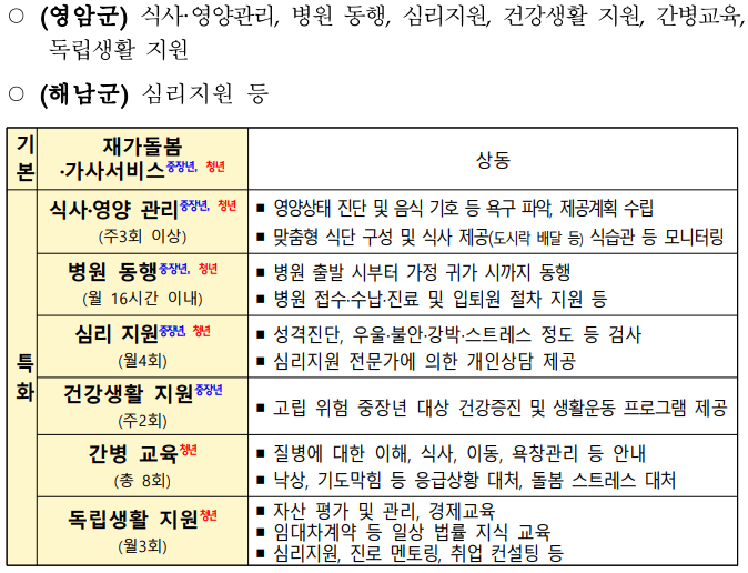 ▣ 전라남도 영암군, 해남군(가족돌봄을 받는 중장년층 및 청년 대상)