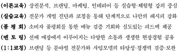 업에 필요한 역량과 경쟁력을 갖춘 사업가로 육성하고, 지역 상권 활성화를 위한 연수생을 모집합니다.