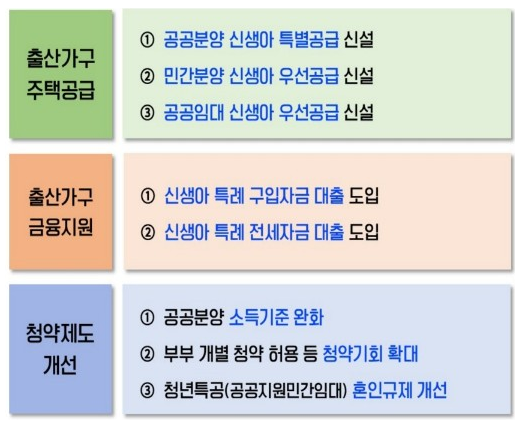 산모가구를 위한 주택공급, 산모가구에 대한 금융지원, 청약제도 개선 총 3개가 있습니다.
