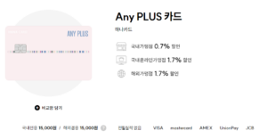 - 추가할인 : 해외이용 1.5%, 온라인쇼핑 1.5%, 편의점 1.5%, 커피숍 1.5%, 대중교통 1.5%