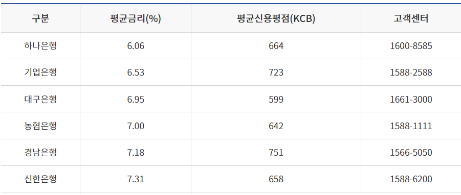 대출 금리는 대출 은행에 따라 다릅니다.